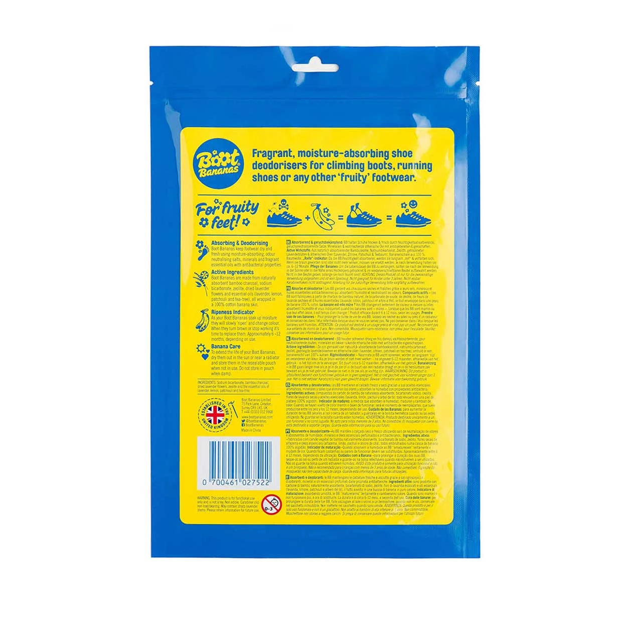 Boot Bananas will bring even the most “fruity” smelling footwear back to pleasantville with a three pronged attack! They absorb moisture, they neutralise odours and have antimicrobial properties. Using these tools the can transform your smelliest shoes and are particularly effective for shoes that you don’t wear socks in, like climbing shoes. They are also effective for any footwear however like hiking boots, running shoes, mountaineering boots and more. Just store you shoes with Boot Bananas in them and you are good to go!
