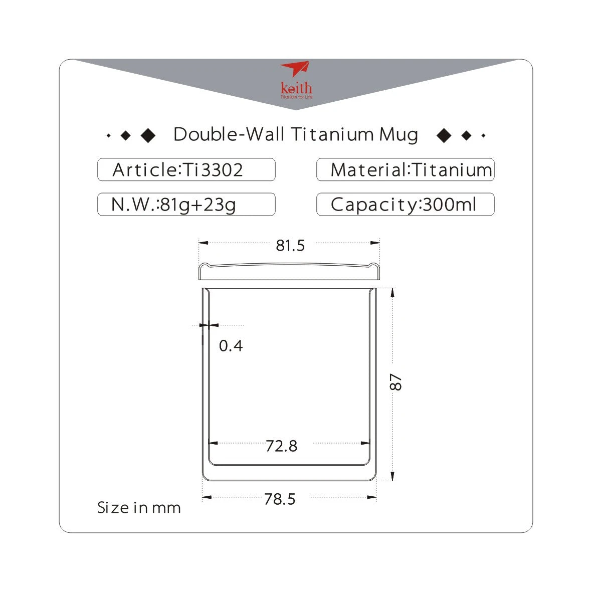 Keith Titanium Double Wall Mug with Lid