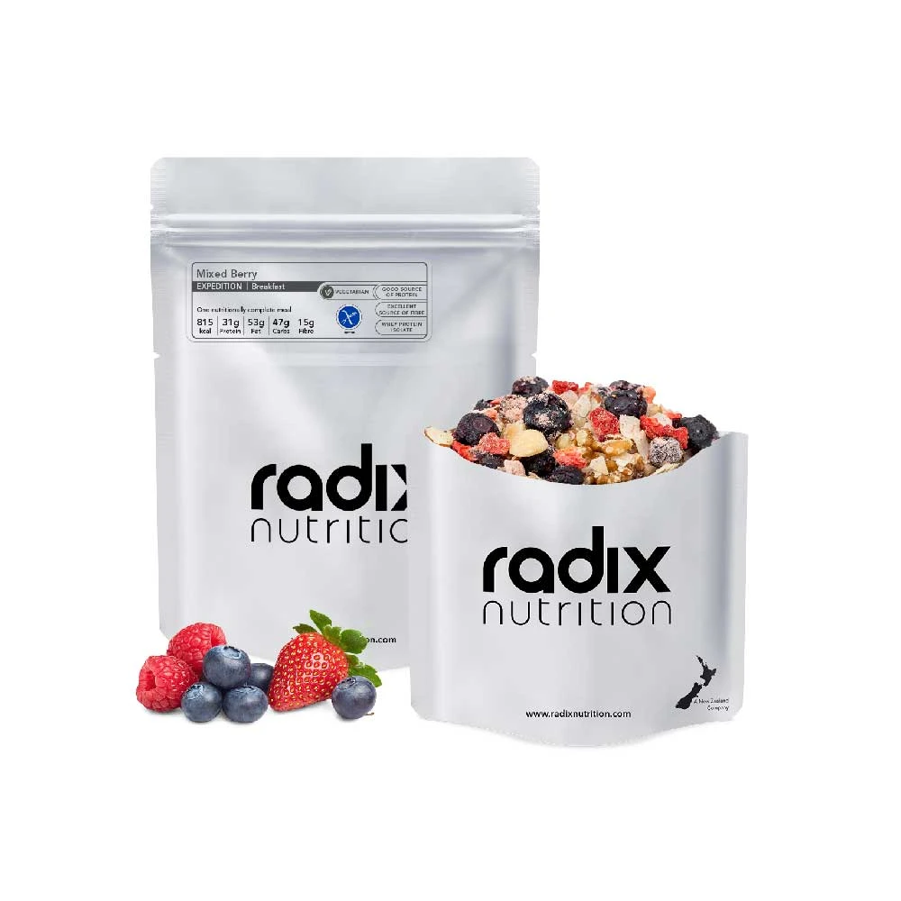 Obviously this Radix breakfast is perfect for energy sapping adventures like multiway hikes and climbs, but it’s just as useful for everyday people on the go and need to make sure their day is set up with a great breakfast. Quick and easy to rehydrate and can stay stored for years.Â